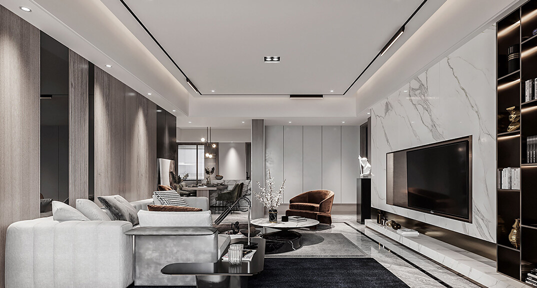 影都壹號127㎡三室兩廳意式輕奢風(fēng)格裝修案例效果圖
