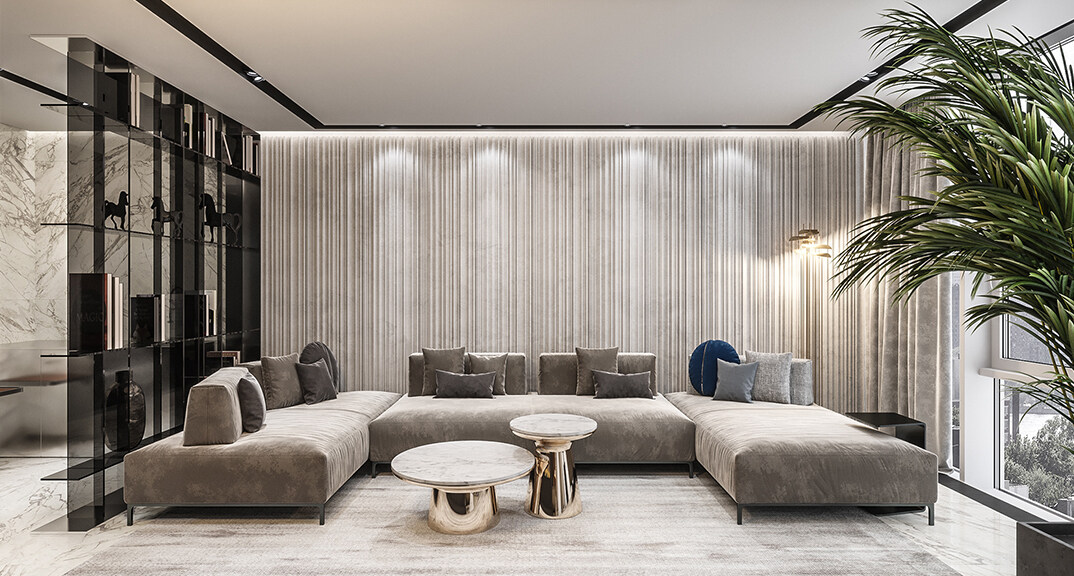 本案設(shè)計(jì)風(fēng)格為意式輕奢,拒絕了濃烈的色彩,以一種簡(jiǎn)單、純粹的設(shè)計(jì)語言,回歸生活的本質(zhì),留存給居住者更多生活想象的空間。 整體空間灰橙色、駝色、與淺暖灰色調(diào)展現(xiàn)輕奢低調(diào)的高級(jí)質(zhì)感,簡(jiǎn)約時(shí)尚的家具又增添了一份現(xiàn)代感,重新梳理了空間功能和尺寸,客廳陽臺(tái)一體化設(shè)計(jì),最大限度引入自然光,高級(jí)灰搭配中性色系木飾面,打造一個(gè)舒適的高品質(zhì)空間。在空間設(shè)計(jì)與色彩配搭上,精準(zhǔn)地把控節(jié)奏,用設(shè)計(jì)表達(dá)空間的包容性,更多的是通過人性化思考,創(chuàng)造一個(gè)功能性完整的舒適生活空間。大塊的木飾面、金屬元素和燈 光的碰撞搭配,凸顯出強(qiáng)大張力,共同打造出意式輕奢腔調(diào)十足的時(shí)尚與質(zhì)感。