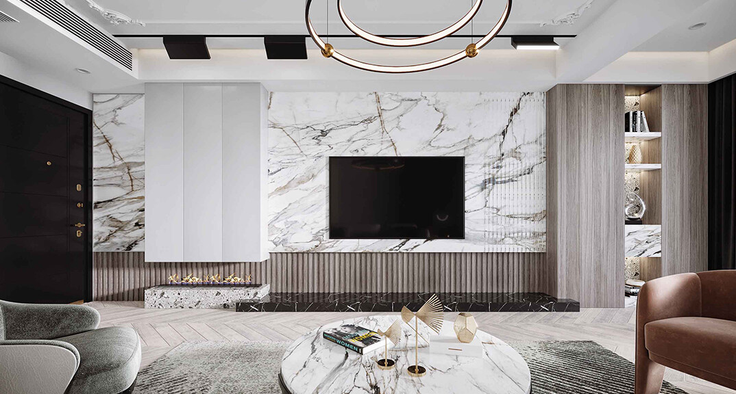 影都壹號(hào)127㎡三室兩廳意式輕奢風(fēng)格裝修案例效果圖