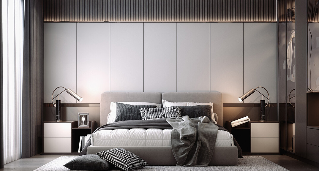 本案設(shè)計(jì)風(fēng)格為意式輕奢,拒絕了濃烈的色彩,以一種簡(jiǎn)單、純粹的設(shè)計(jì)語言,回歸生活的本質(zhì),留存給居住者更多生活想象的空間。 整體空間灰橙色、駝色、與淺暖灰色調(diào)展現(xiàn)輕奢低調(diào)的高級(jí)質(zhì)感,簡(jiǎn)約時(shí)尚的家具又增添了一份現(xiàn)代感,重新梳理了空間功能和尺寸,客廳陽臺(tái)一體化設(shè)計(jì),最大限度引入自然光,高級(jí)灰搭配中性色系木飾面,打造一個(gè)舒適的高品質(zhì)空間。在空間設(shè)計(jì)與色彩配搭上,精準(zhǔn)地把控節(jié)奏,用設(shè)計(jì)表達(dá)空間的包容性,更多的是通過人性化思考,創(chuàng)造一個(gè)功能性完整的舒適生活空間。大塊的木飾面、金屬元素和燈 光的碰撞搭配,凸顯出強(qiáng)大張力,共同打造出意式輕奢腔調(diào)十足的時(shí)尚與質(zhì)感。