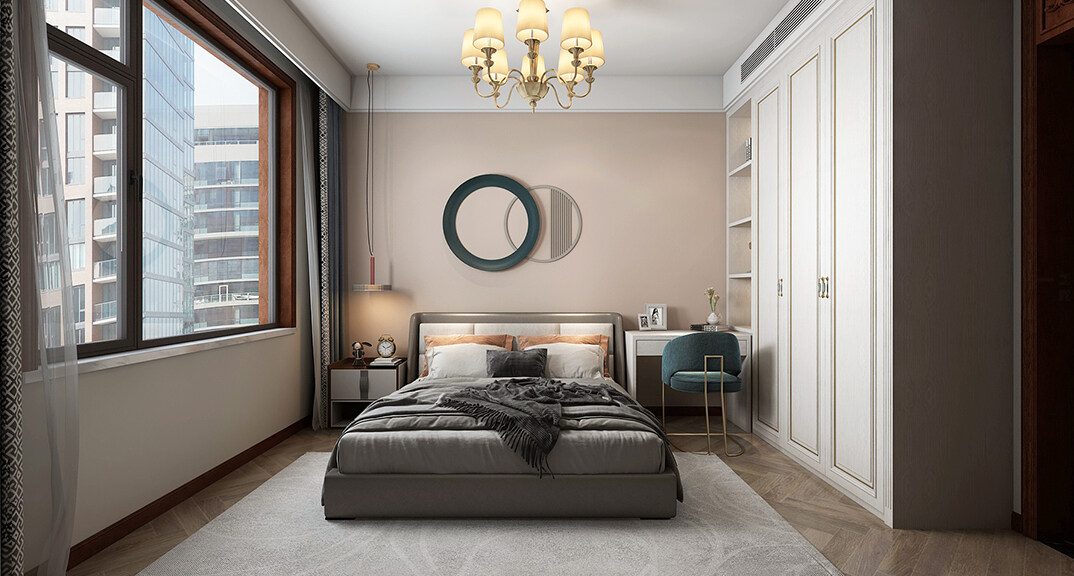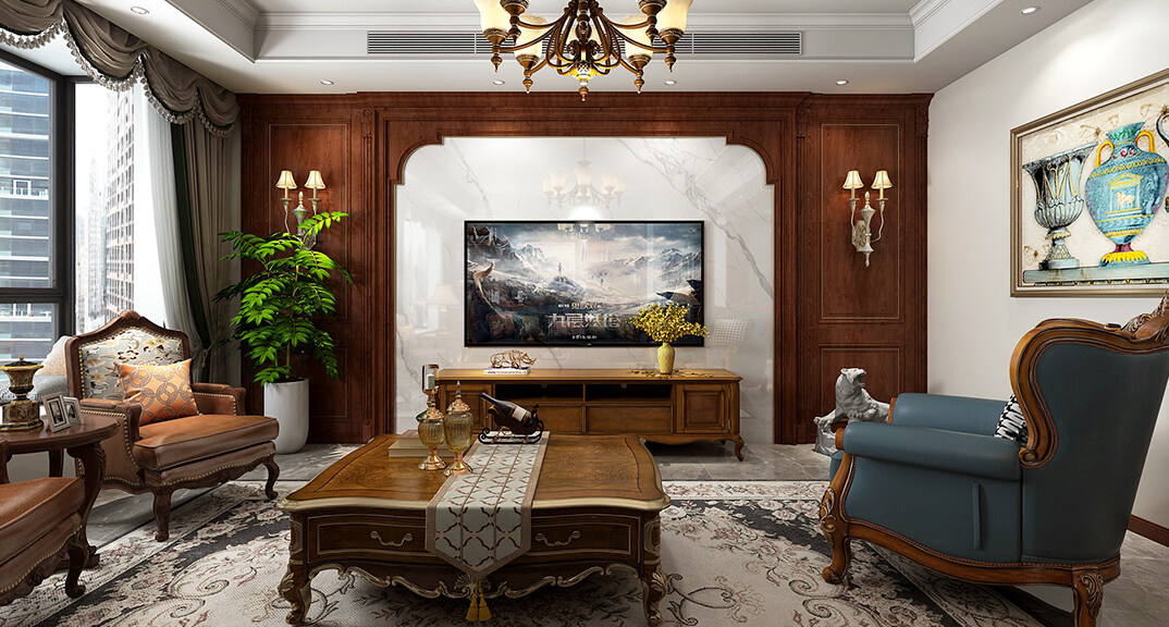 本案是新中式與美式的混搭,美式的溫馨和舒適,自由和隨性,加上中式的韻味和情懷,真是好一幅美景,讓人流連忘返。美式精致中含著優(yōu)雅,中式掛畫的點(diǎn)綴。米色中性色奠定空間整體基調(diào),三兩色彩大膽撞出火花,優(yōu)雅中帶著點(diǎn)調(diào)皮,穩(wěn)重又不失活潑。