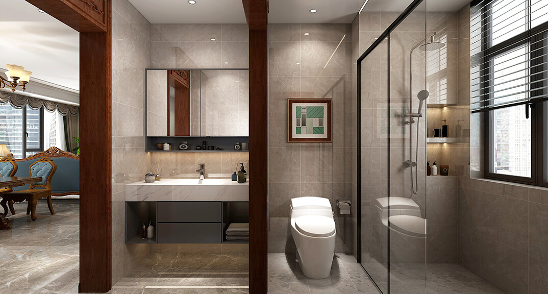 海信依云小鎮(zhèn)萊茵185㎡四室一廳衛(wèi)生間混搭風(fēng)格裝修案例效果圖