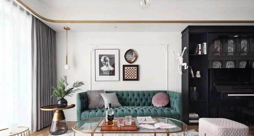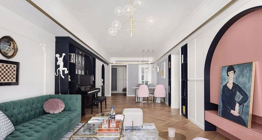 祥和家園118㎡三室兩廳客廳復古混搭風格裝修案例效果圖