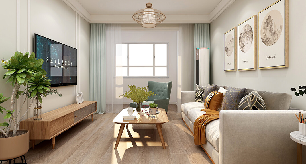 御景新苑89㎡兩室一廳客廳日式風(fēng)格裝修案例效果圖