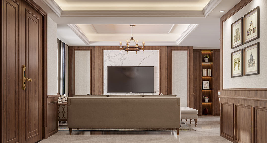 金秋泰和郡180㎡別墅客廳電視美式風(fēng)格裝修案例效果圖