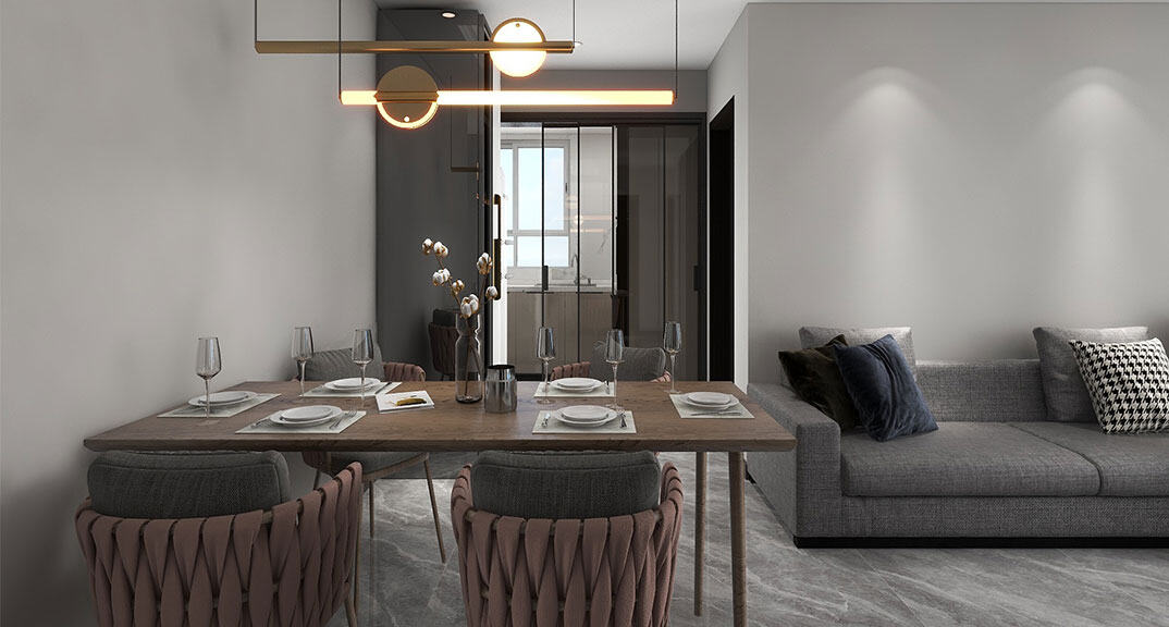 以簡潔、清晰和功能性為特征的室內(nèi)設(shè)計(jì);它主要強(qiáng)調(diào)了空間的簡化和精煉,追求線條簡單、空間通透、色彩明亮、材質(zhì)自然等特點(diǎn),注重形式與功能的結(jié)合。他們希望有一個(gè)時(shí)尚、現(xiàn)代的功能性空間,在整個(gè)空間的設(shè)計(jì)上用了暖灰調(diào)來與簡約的線條感來相呼應(yīng),能改造出一個(gè)通透、流暢的空間感。