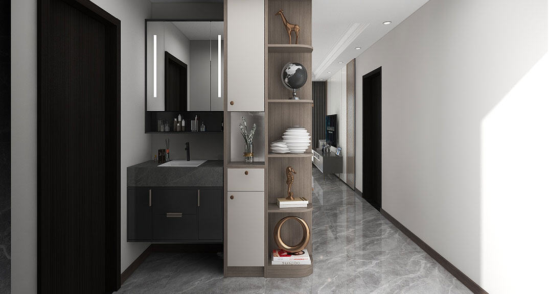 銀川美居103㎡三室一廳玄關(guān)現(xiàn)代簡約風(fēng)格裝修案例效果圖