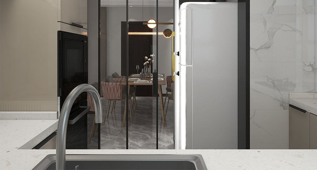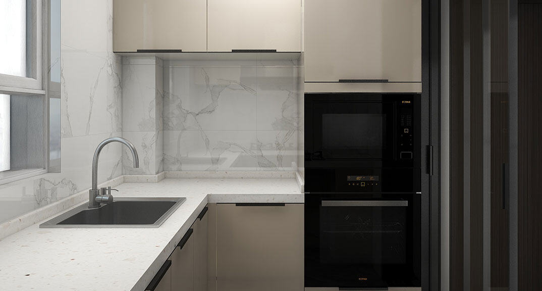 銀川美居103㎡三室一廳廚房現(xiàn)代簡約風(fēng)格裝修案例效果圖