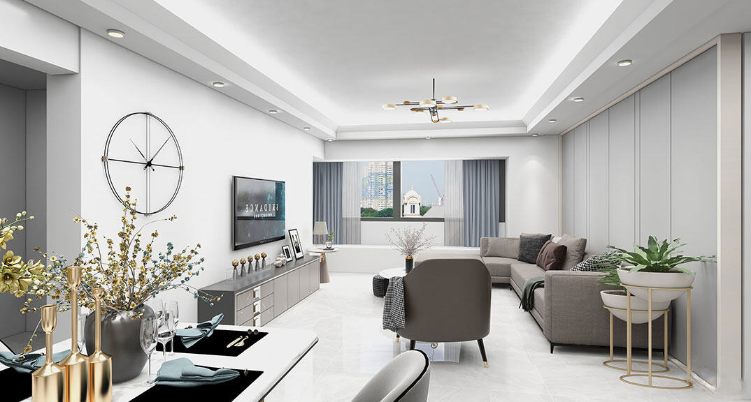 以簡潔、清晰和功能性為特征的室內(nèi)設(shè)計(jì);它主要強(qiáng)調(diào)了空間的簡化和精煉,追求線條簡單、空間通透、色彩明亮、材質(zhì)自然等特點(diǎn),注重形式與功能的結(jié)合。他們希望有一個(gè)時(shí)尚、現(xiàn)代的功能性空間,在整個(gè)空間的設(shè)計(jì)上用了暖灰調(diào)來與簡約的線條感來相呼應(yīng),能改造出一個(gè)通透、流暢的空間感。