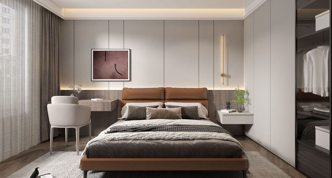 金地·錦宸135㎡三室二廳主臥現(xiàn)代簡約風(fēng)格戶型研發(fā)案例效果圖