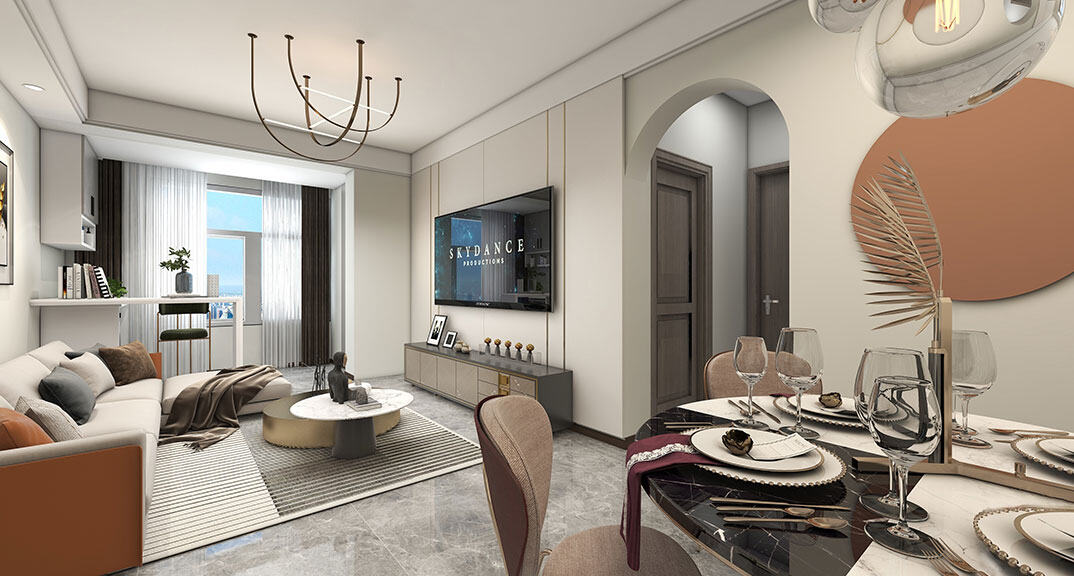 本案設(shè)計(jì)風(fēng)格為意式輕奢,拒絕了濃烈的色彩,以一種簡(jiǎn)單、純粹的設(shè)計(jì)語言,回歸生活的本質(zhì),留存給居住者更多生活想象的空間。 整體空間灰橙色、駝色、與淺暖灰色調(diào)展現(xiàn)輕奢低調(diào)的高級(jí)質(zhì)感,簡(jiǎn)約時(shí)尚的家具又增添了一份現(xiàn)代感,重新梳理了空間功能和尺寸,客廳陽臺(tái)一體化設(shè)計(jì),最大限度引入自然光,高級(jí)灰搭配中性色系木飾面,打造一個(gè)舒適的高品質(zhì)空間。在空間設(shè)計(jì)與色彩配搭上,精準(zhǔn)地把控節(jié)奏,用設(shè)計(jì)表達(dá)空間的包容性,更多的是通過人性化思考,創(chuàng)造一個(gè)功能性完整的舒適生活空間。大塊的木飾面、金屬元素和燈 光的碰撞搭配,凸顯出強(qiáng)大張力,共同打造出意式輕奢腔調(diào)十足的時(shí)尚與質(zhì)感。