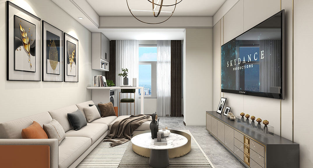 金地·錦宸95㎡二室一廳客廳現(xiàn)代簡(jiǎn)約風(fēng)格戶型研發(fā)案例效果圖