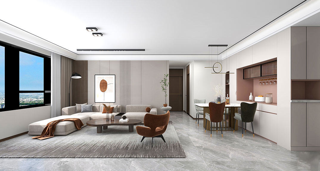 以簡潔、清晰和功能性為特征的室內(nèi)設(shè)計;它主要強調(diào)了空間的簡化和精煉,追求線條簡單、空間通透、色彩明亮、材質(zhì)自然等特點,注重形式與功能的結(jié)合。他們希望有一個時尚、現(xiàn)代的功能性空間,在整個空間的設(shè)計上用了暖灰調(diào)來與簡約的線條感來相呼應(yīng),能改造出一個通透、流暢的空間感。