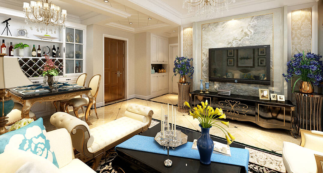 在空間設(shè)計(jì)上強(qiáng)調(diào)以富麗的裝修、濃郁的顏色、精巧的外型從而達(dá)雍容華貴的裝修作用,提現(xiàn)滿滿的歐式風(fēng)味。歐式風(fēng)格中不可或缺的水晶吊燈、鏡面、新古典主義的靜物油畫等元素,種種這一切,將空間裝扮得華彩濃烈又分外妖嬈。