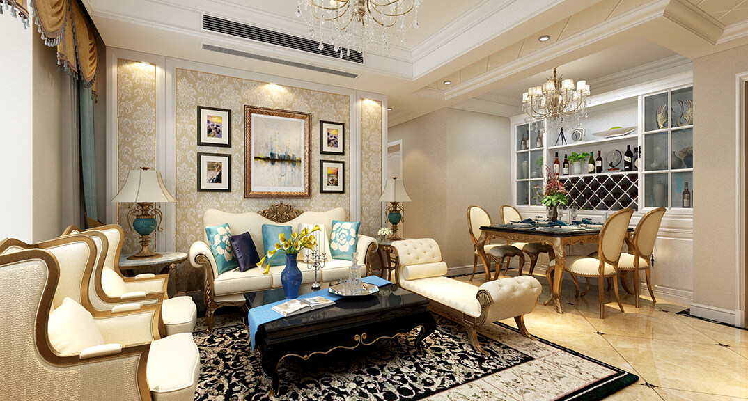 海信東山郡106m2法式風(fēng)格客廳裝修案例效果圖