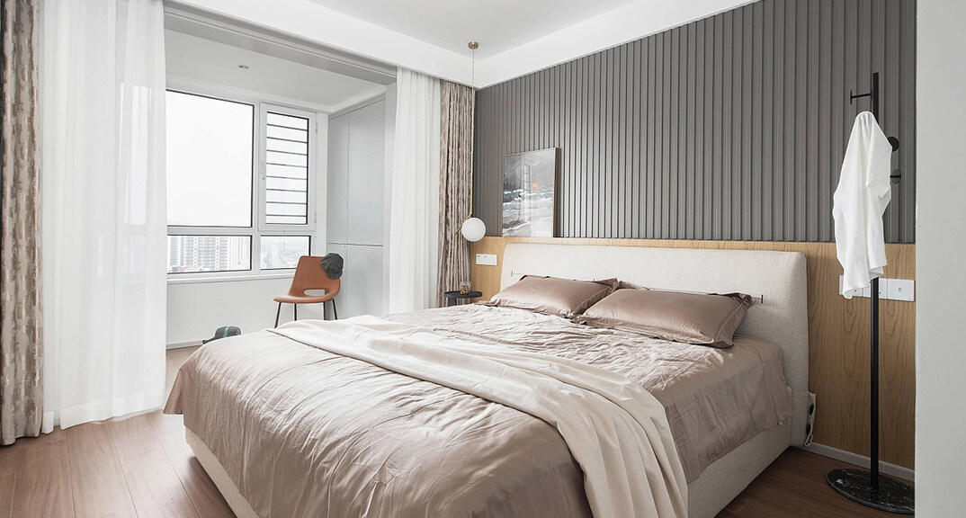 魯商藍(lán)岸公館105㎡三室二廳主臥現(xiàn)代風(fēng)格裝修案例效果圖