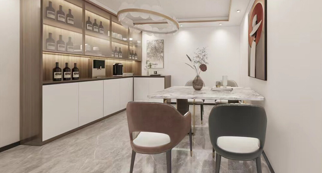 魯商藍(lán)岸公館124㎡三室二廳餐廳現(xiàn)代中式風(fēng)格戶(hù)型研發(fā)案例效果圖