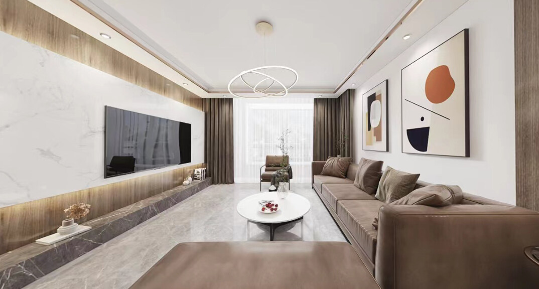 本案設(shè)計(jì)風(fēng)格為意式輕奢,拒絕了濃烈的色彩,以一種簡(jiǎn)單、純粹的設(shè)計(jì)語(yǔ)言,回歸生活的本質(zhì),留存給居住者更多生活想象的空間。 整體空間灰橙色、駝色、與淺暖灰色調(diào)展現(xiàn)輕奢低調(diào)的高級(jí)質(zhì)感,簡(jiǎn)約時(shí)尚的家具又增添了一份現(xiàn)代感,重新梳理了空間功能和尺寸,客廳陽(yáng)臺(tái)一體化設(shè)計(jì),最大限度引入自然光,高級(jí)灰搭配中性色系木飾面,打造一個(gè)舒適的高品質(zhì)空間。在空間設(shè)計(jì)與色彩配搭上,精準(zhǔn)地把控節(jié)奏,用設(shè)計(jì)表達(dá)空間的包容性,更多的是通過(guò)人性化思考,創(chuàng)造一個(gè)功能性完整的舒適生活空間。大塊的木飾面、金屬元素和燈 光的碰撞搭配,凸顯出強(qiáng)大張力,共同打造出意式輕奢腔調(diào)十足的時(shí)尚與質(zhì)感。