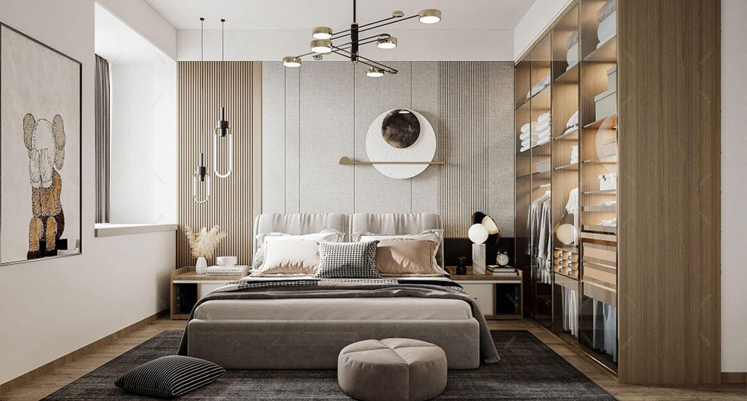 青鋼小鎮(zhèn)101㎡二室二廳主臥現(xiàn)代輕奢風(fēng)格裝修案例效果