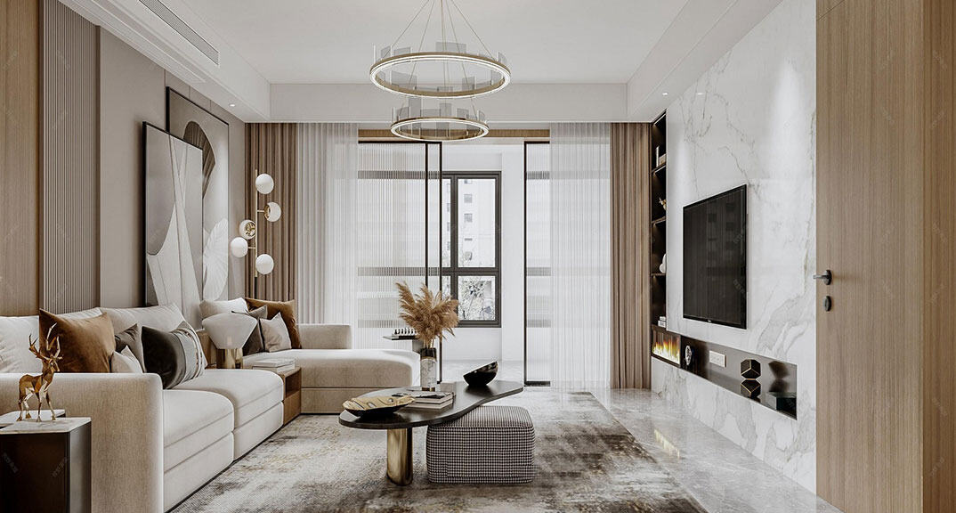 青鋼小鎮(zhèn)101㎡二室二廳客廳現(xiàn)代輕奢風(fēng)格裝修案例效果圖.jpg