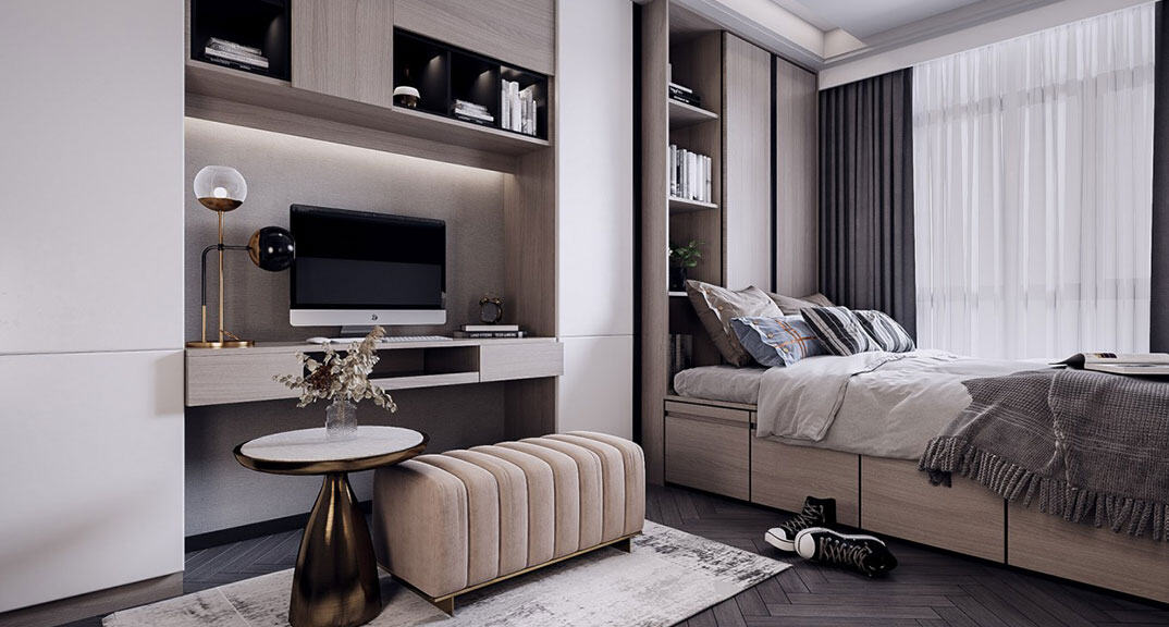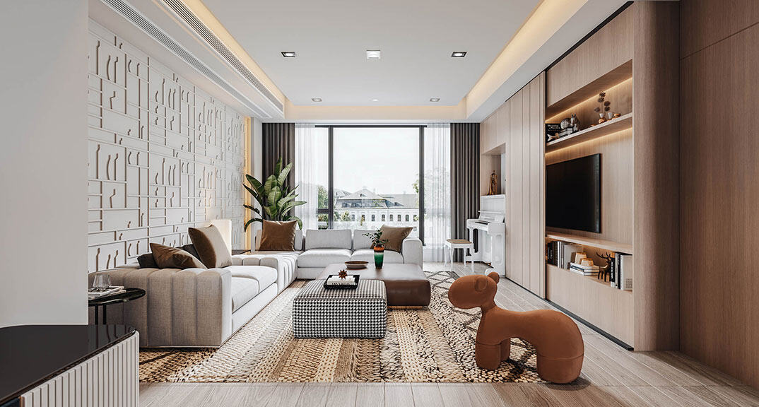 以簡潔、清晰和功能性為特征的室內(nèi)設(shè)計(jì);它主要強(qiáng)調(diào)了空間的簡化和精煉,追求線條簡單、空間通透、色彩明亮、材質(zhì)自然等特點(diǎn),注重形式與功能的結(jié)合。他們希望有一個(gè)時(shí)尚、現(xiàn)代的功能性空間,在整個(gè)空間的設(shè)計(jì)上用了暖灰調(diào)來與簡約的線條感來相呼應(yīng),能改造出一個(gè)通透、流暢的空間感。