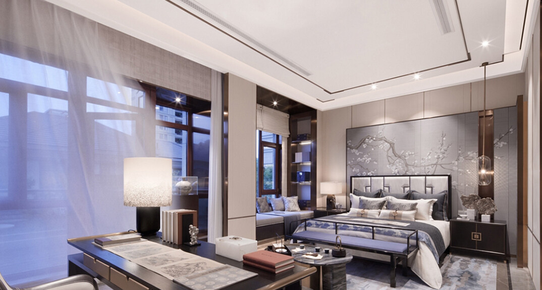 荷塘月色188㎡主臥餐廳新中式風(fēng)格裝修案例效果圖