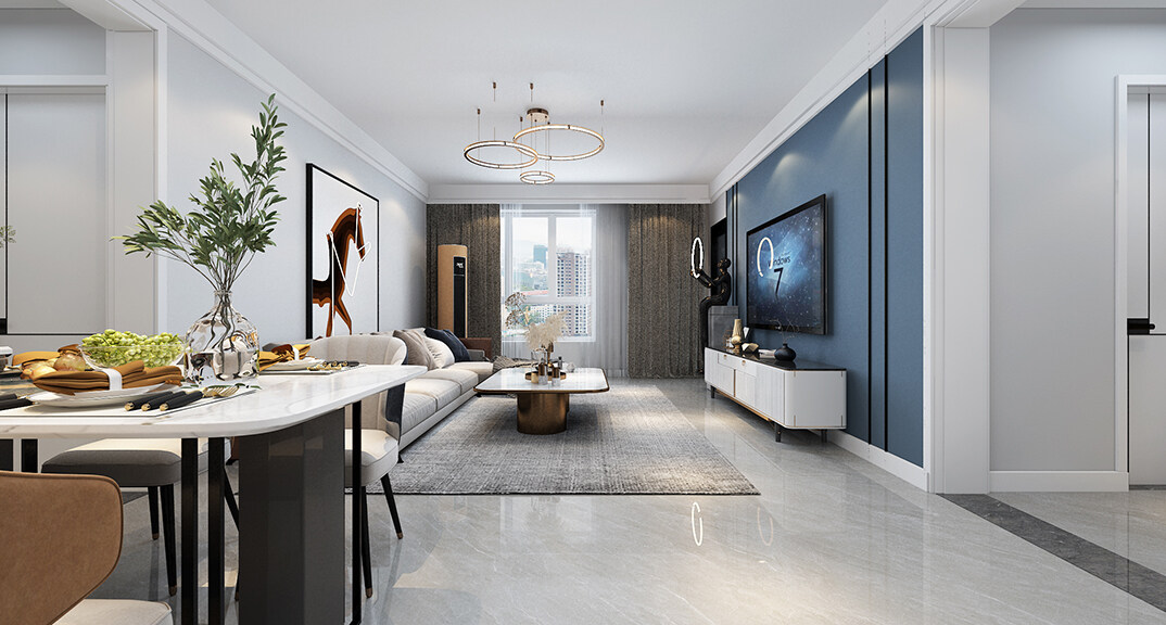磊鑫伊頓陽(yáng)光125㎡三室二廳客餐廳輕奢風(fēng)格裝修案例效果圖