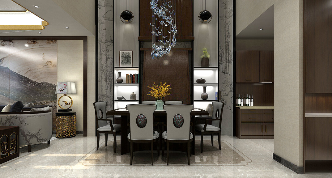 桂花園280㎡別墅餐廳新中式風(fēng)格裝修案例效果圖