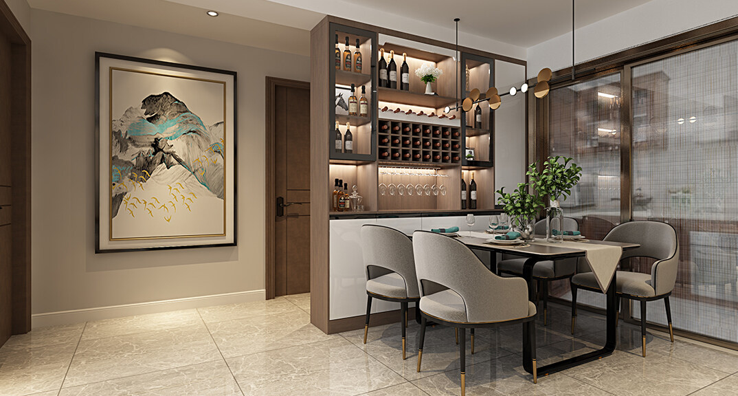 天寧首府128㎡三室兩廳餐廳新中式風(fēng)格裝修案例效果圖
