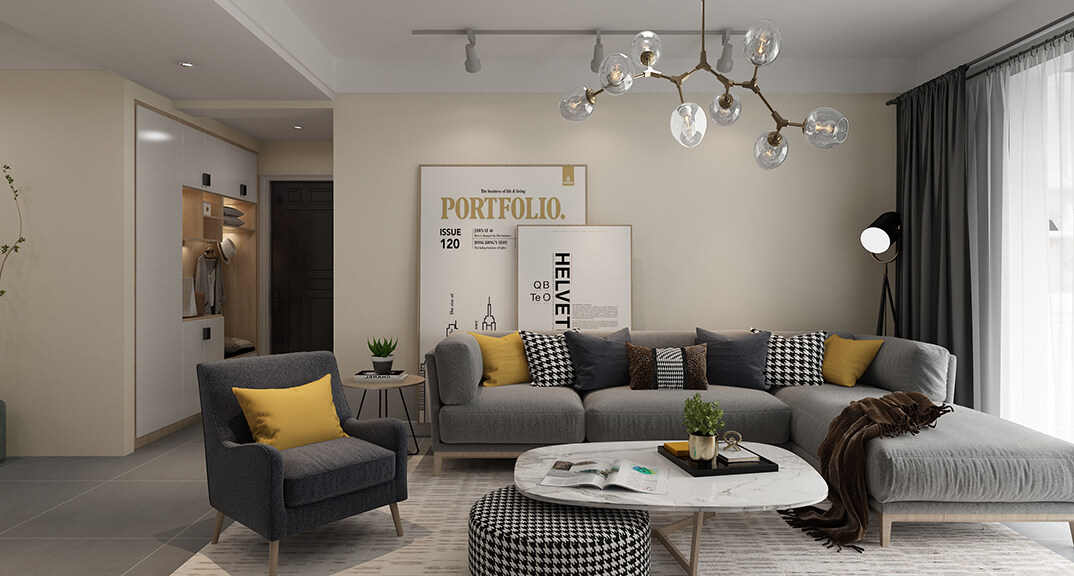 永利國際134㎡三室兩廳客廳沙發(fā)北歐風格裝修案例效果圖