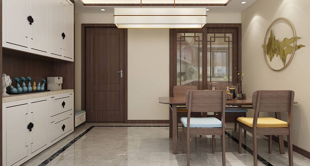 日照港第一生活區(qū)139㎡三室兩廳餐廳新中式風(fēng)格裝修案例效果圖