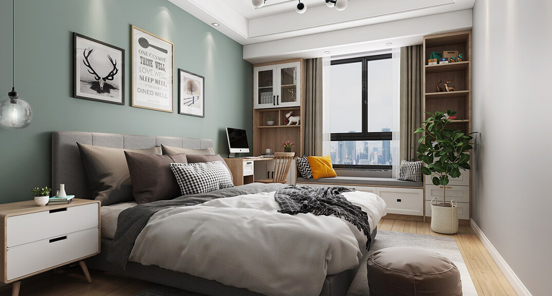 日照港第一生活區(qū)139㎡三室兩廳臥室新中式風(fēng)格裝修案例效果圖