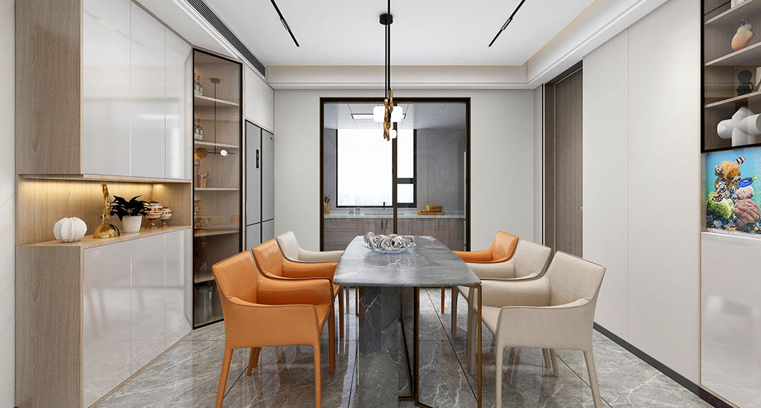 越秀鉑悅府132㎡三室兩廳餐廳現(xiàn)代輕奢風(fēng)格裝修案例效果圖