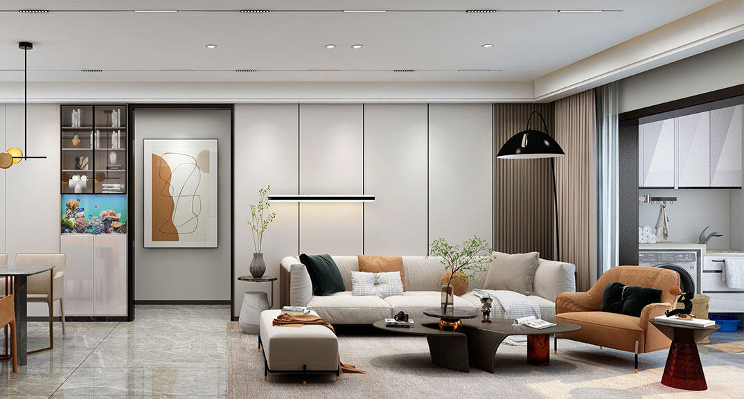 以簡潔、清晰和功能性為特征的室內(nèi)設(shè)計;它主要強調(diào)了空間的簡化和精煉,追求線條簡單、空間通透、色彩明亮、材質(zhì)自然等特點,注重形式與功能的結(jié)合。他們希望有一個時尚、現(xiàn)代的功能性空間,在整個空間的設(shè)計上用了暖灰調(diào)來與簡約的線條感來相呼應(yīng),能改造出一個通透、流暢的空間感。