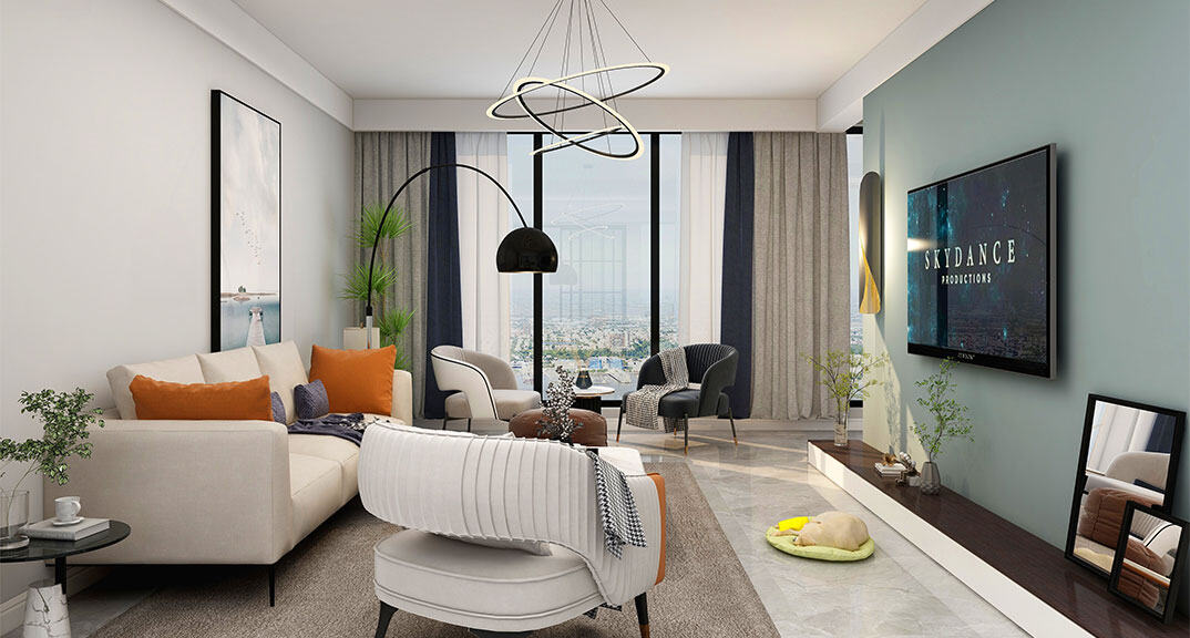 陽光上城118㎡三室兩廳客廳現(xiàn)代極簡風(fēng)格裝修案例效果圖