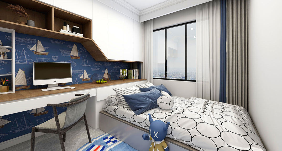 陽光上城118㎡三室兩廳臥室沙發(fā)現(xiàn)代極簡風(fēng)格裝修案例效果圖