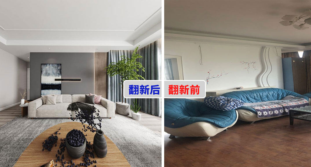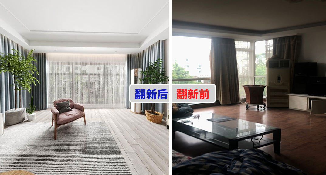 金海灣125㎡三室兩廳客廳北歐風(fēng)格老房翻新裝修前后對比圖