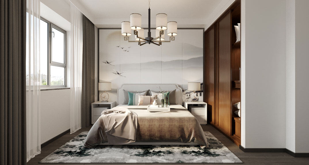 中仁瀾山悅119㎡三室兩廳次臥新中式風(fēng)格裝修案例效果圖