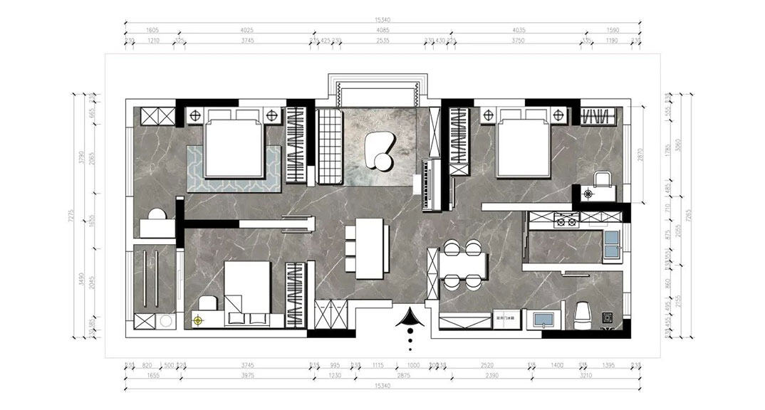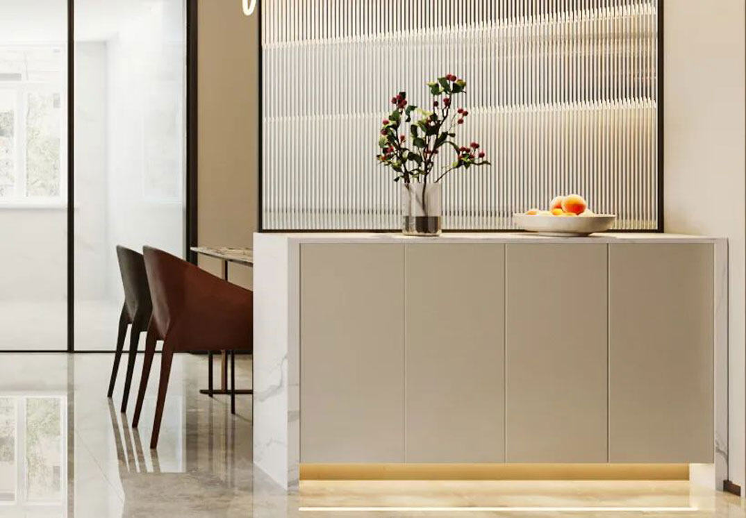 本案整體以現(xiàn)代中式風(fēng)格為主,既有現(xiàn)代風(fēng)格簡(jiǎn)約、明朗的線條,又有中國(guó)傳統(tǒng)內(nèi)涵與韻味。墻面大面積使用暖色烘托整體氛圍,融洽中式與現(xiàn)代簡(jiǎn)約兩種風(fēng)格??臻g更寬闊舒適玄關(guān)收納、玄關(guān)與干區(qū)相結(jié)合,既解放的外衛(wèi)的空間客廳電視背景是一面裝飾柜,豐富了空間,增加了收納和儲(chǔ)物,美觀又實(shí)用。