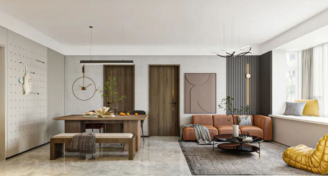 本案設(shè)計(jì)風(fēng)格為意式輕奢,拒絕了濃烈的色彩,以一種簡(jiǎn)單、純粹的設(shè)計(jì)語(yǔ)言,回歸生活的本質(zhì),留存給居住者更多生活想象的空間。 整體空間灰橙色、駝色、與淺暖灰色調(diào)展現(xiàn)輕奢低調(diào)的高級(jí)質(zhì)感,簡(jiǎn)約時(shí)尚的家具又增添了一份現(xiàn)代感,重新梳理了空間功能和尺寸,客廳陽(yáng)臺(tái)一體化設(shè)計(jì),最大限度引入自然光,高級(jí)灰搭配中性色系木飾面,打造一個(gè)舒適的高品質(zhì)空間。在空間設(shè)計(jì)與色彩配搭上,精準(zhǔn)地把控節(jié)奏,用設(shè)計(jì)表達(dá)空間的包容性,更多的是通過(guò)人性化思考,創(chuàng)造一個(gè)功能性完整的舒適生活空間。大塊的木飾面、金屬元素和燈 光的碰撞搭配,凸顯出強(qiáng)大張力,共同打造出意式輕奢腔調(diào)十足的時(shí)尚與質(zhì)感。