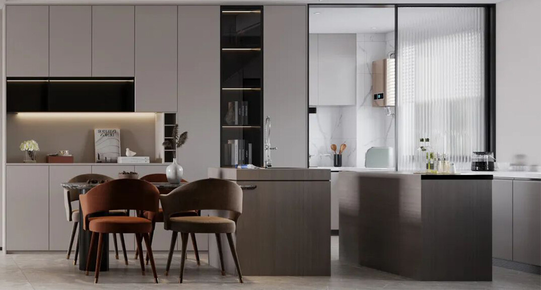 安泰未來(lái)城140㎡三室兩廳餐廳廚房現(xiàn)代簡(jiǎn)約風(fēng)格裝修案例效果圖