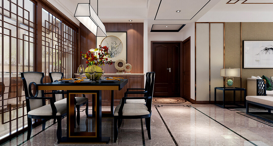 安泰悅湖灣138㎡三室兩廳餐廳新中式風(fēng)格裝修案例效果圖
