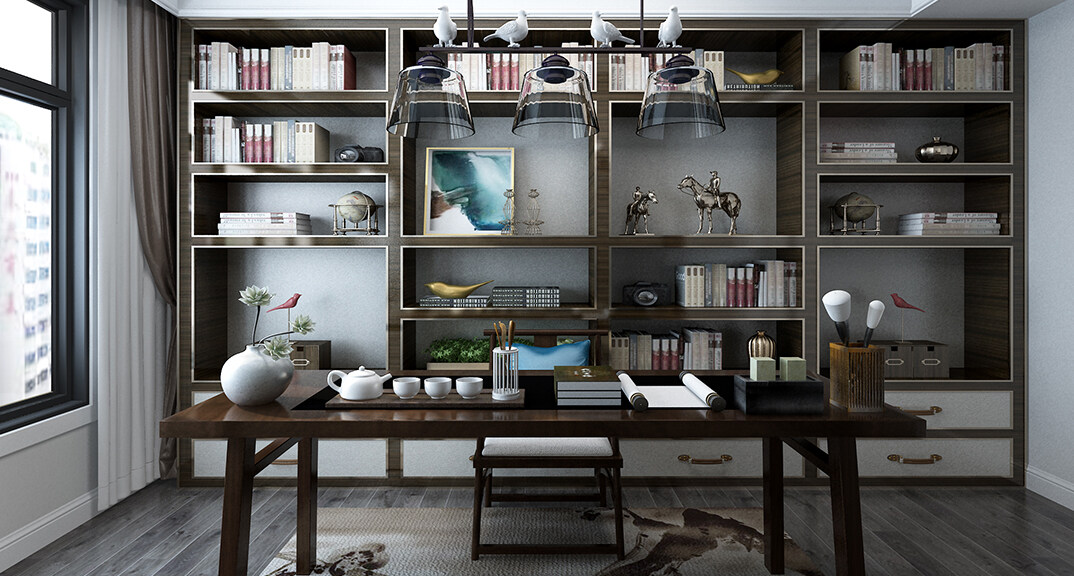 白鷺灣230㎡H戶型書房新中式風格裝修案例效果圖