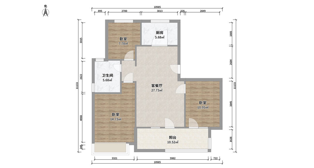 越秀天悅海灣97㎡三室一廳戶型平面布局圖