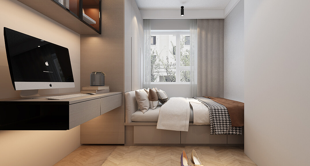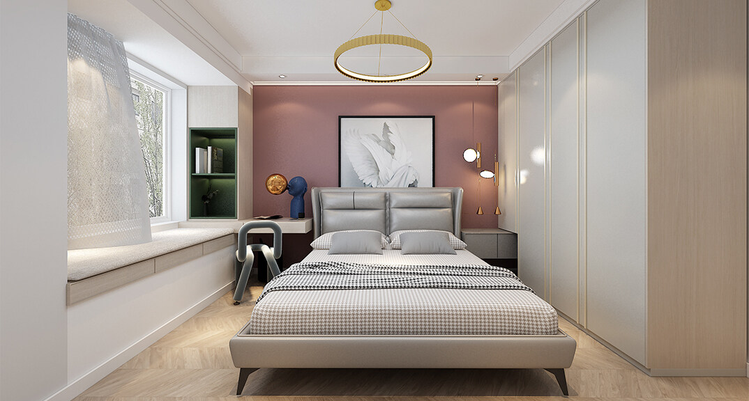 越秀天悅海灣97㎡三室一廳臥室現(xiàn)代輕奢風格裝修案例效果圖