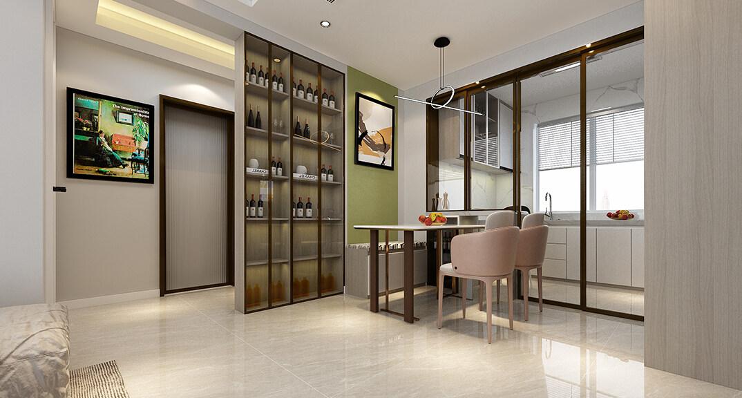 越秀天悅海灣97㎡三室一廳餐廳現(xiàn)代輕奢風格裝修案例效果圖