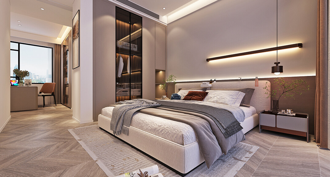 青特悅海府175㎡四室兩廳臥室現(xiàn)代簡約風(fēng)格裝修案例效果圖