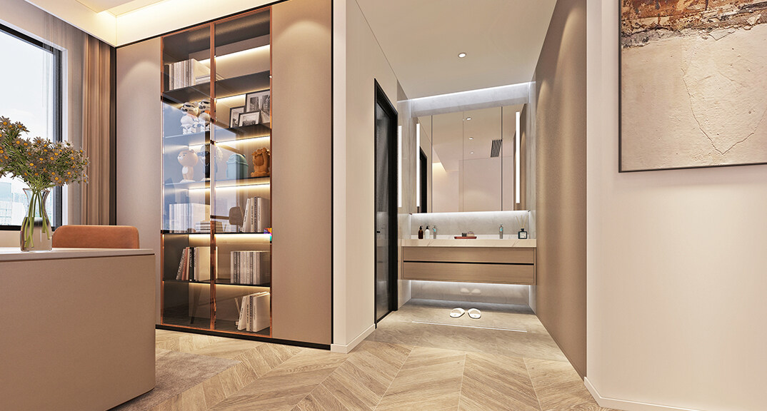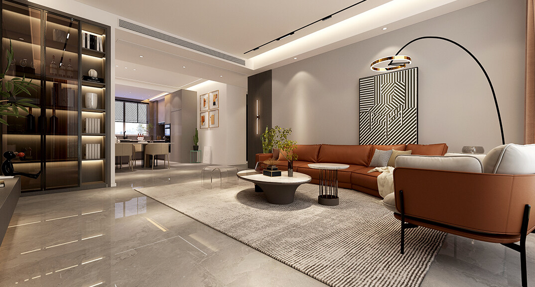 本案設(shè)計風(fēng)格為意式輕奢,拒絕了濃烈的色彩,以一種簡單、純粹的設(shè)計語言,回歸生活的本質(zhì),留存給居住者更多生活想象的空間。 整體空間灰橙色、駝色、與淺暖灰色調(diào)展現(xiàn)輕奢低調(diào)的高級質(zhì)感,簡約時尚的家具又增添了一份現(xiàn)代感,重新梳理了空間功能和尺寸,客廳陽臺一體化設(shè)計,最大限度引入自然光,高級灰搭配中性色系木飾面,打造一個舒適的高品質(zhì)空間。在空間設(shè)計與色彩配搭上,精準(zhǔn)地把控節(jié)奏,用設(shè)計表達(dá)空間的包容性,更多的是通過人性化思考,創(chuàng)造一個功能性完整的舒適生活空間。大塊的木飾面、金屬元素和燈 光的碰撞搭配,凸顯出強(qiáng)大張力,共同打造出意式輕奢腔調(diào)十足的時尚與質(zhì)感。