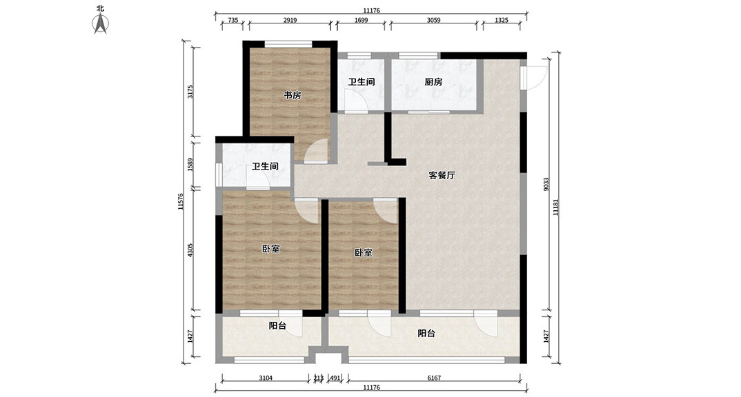 上流和苑130㎡三室兩廳現(xiàn)代簡(jiǎn)約風(fēng)格裝修案例效果圖