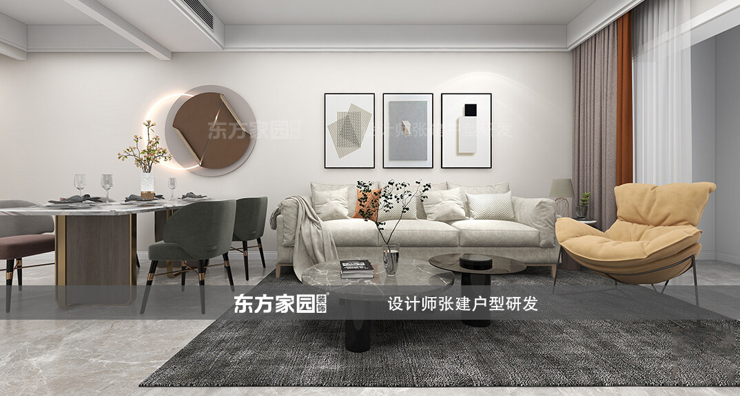 以現(xiàn)代風(fēng)格為主調(diào),主要色彩是米色、淺咖色、白色。在總體布局方面滿足寬敞明亮的需求,注重居室空間的布局與使用功能的完美結(jié)合。整體簡(jiǎn)約又不失設(shè)計(jì)感,開(kāi)放式布局空間聯(lián)通,動(dòng)線流暢??蛷d米灰色系的沙發(fā),造型簡(jiǎn)約,搭配材質(zhì)柔軟的軟裝,使客廳充滿閑話自在的空間氛圍。